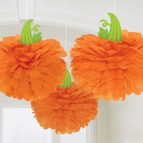 Závěsné dekorace Dýně -ponpom - 3ks