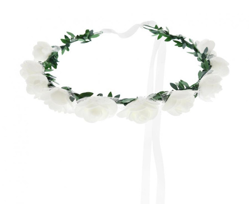 Stylová květinová čelenka nebo korunka s květy růží v bílé barvě. Stylová květinová čelenka, která se hodí pro nevěstu v její svatební den ale i jako rekvizita do fotokoutku. Hledáte doplněk ke svým boho šatům? Boho styl svatba, a oslavy v přírodním stylu, jsou modní a trendy. Vyzkoušejte i vy co se nosí!