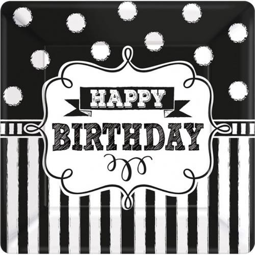 Papírové talíře Retro party Happy Birthday 25 cm - 8 ks