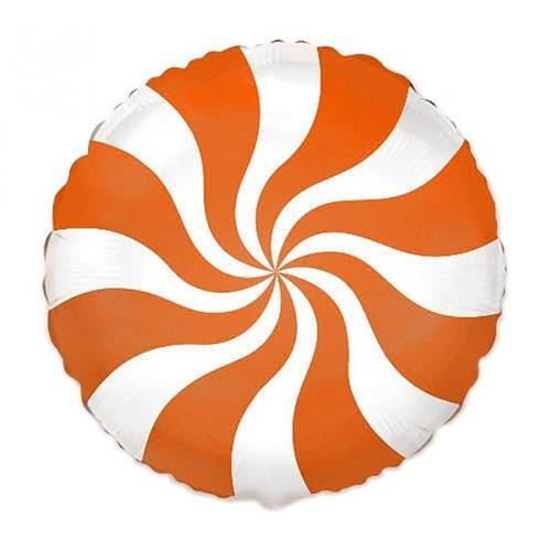 Kulatý foliový balonek připomínající bonbón v oranžové barvě, rozměr 46 cm. Tento balónek je perfektní dekorační doplněk na oslavu narozenin nebo jako výzdoba party. Hodí se také jako malý dárek.