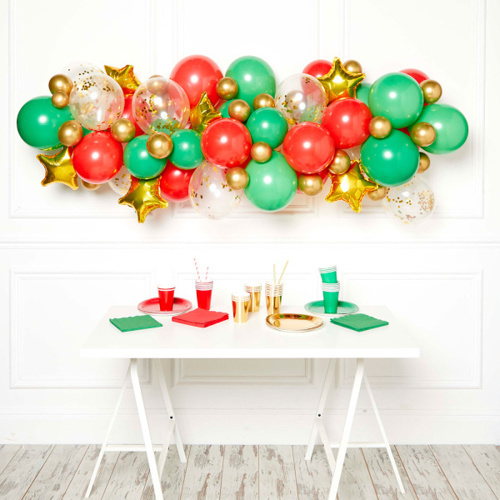 Sada pro výrobu balonkové girlandy ve vánočních barvách. Balonková výzdoba je oblíbená party dekorace a lze jí využít například na oslavě narozenin, firemní večírek ale i jako vánoční dekorace. Balonek je vyroben z recyklovatelných materiálů a je 100% recyklovatelný.
