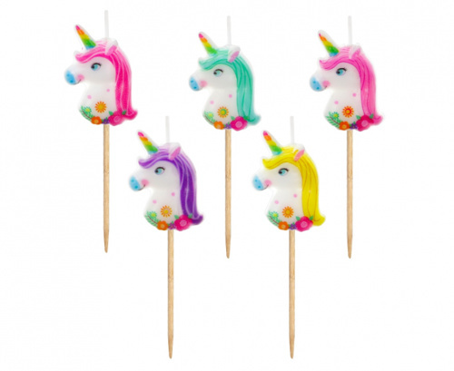 Svíčky vhodné na dort nebo do cupcaku, ve tvaru hlavy jednorožce. Můžou být využity i jako svíčky na dort oslavenci. Rozhodně dodají skvělou atmosféru celé oslavě. Počet: 5 ks. prečítať celé