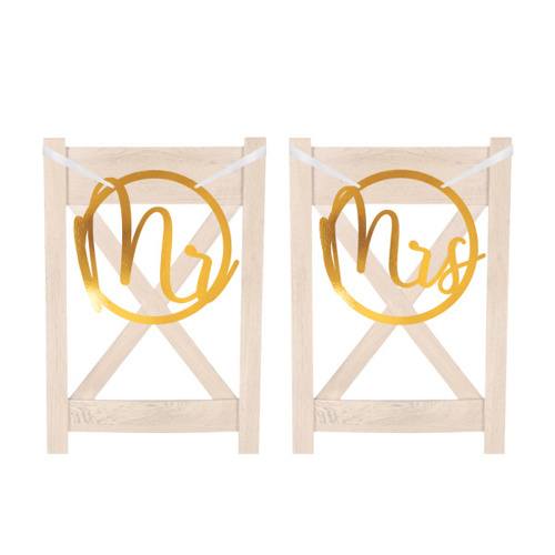 Papírová dekorace na židle ve zlaté barvě s nápisem Mr a Mrs. vhodný k dekoraci židlí nebo doplnění výzdoby na svatbě nebo rozlučky se svobodou. Tímto jednoduchým party doplňkem, dotáhnete každou oslavu k dokonalosti. Rozměr: 28 x 30 cm. Balení: 2 ks. prečítať celé