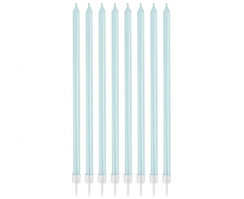 Dortové svíčky dlouhé s držátky - modré 15, 5 cm - 8 ks