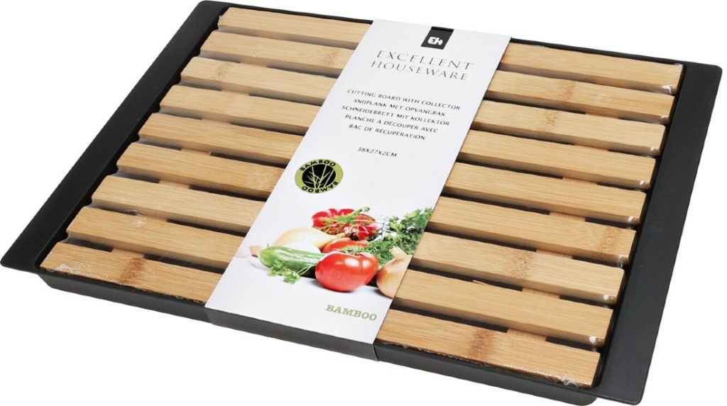 CUTTING BOARD BREAD BAMBOO (PHYLLOSTACHYS) WITH PP TRAY ANTHRACITE C0L0R, SIZE 380X272X20MM, SIZE BAMBOO 330X260X15MM, WEIGHT: 630 GRAM, EACH SET WITH OUR DESIGN PAPER SLEEVE WITH PE COATING/ 380X272X20MM, Shrinkwrapped (SW5): , 330X260X15MM / CFT 0,93,(26.350/40ft HQ) prečítať celé