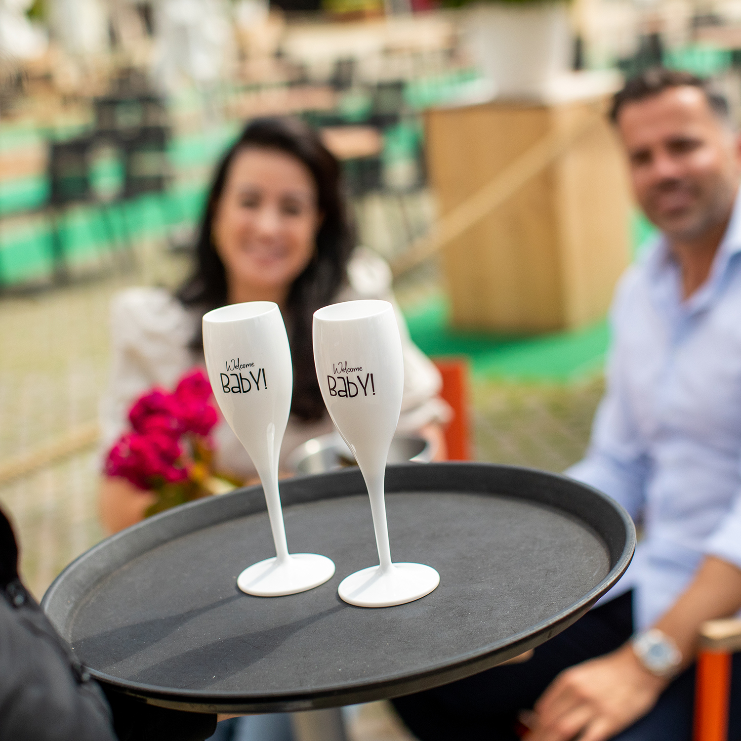 CHEERS NO.1 WELCOME BABY, sklenice na sekt 100ml KOZIOL, bílá
