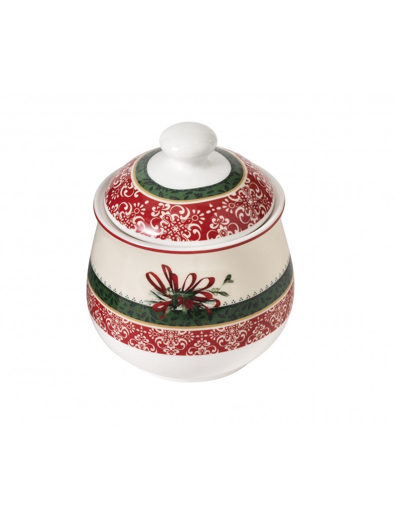Cukřenka z porcelánu v bílé/červené/zelené barvě.