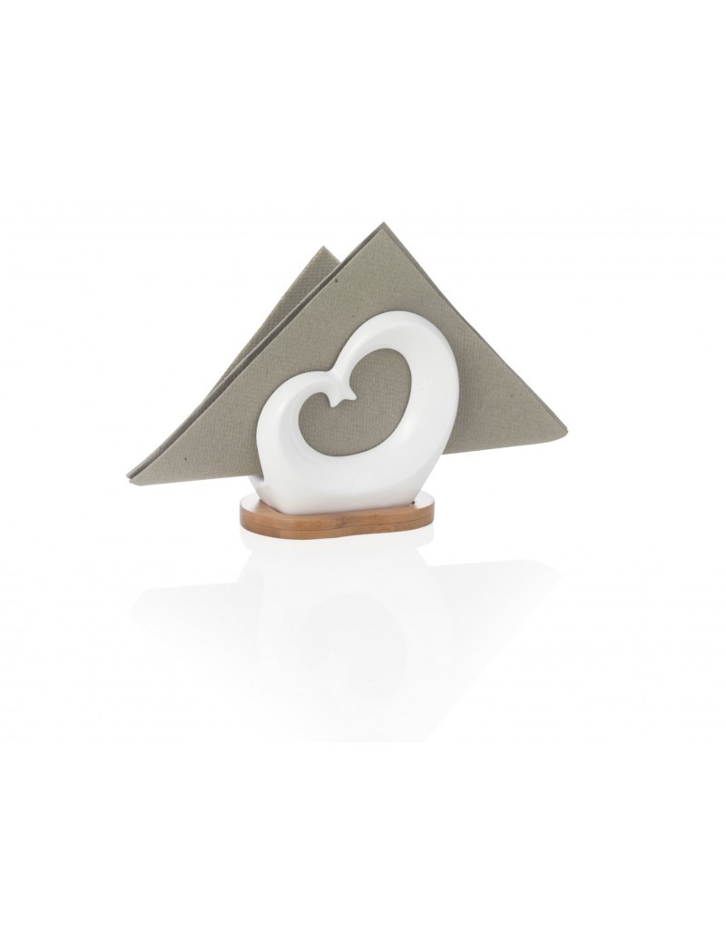 Dvojité srdce držák na ubrousky z porcelánu a bambusu.