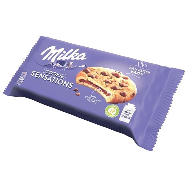 Křupavé sušenky s jemnou čokoládovou náplní a kousky Milka čokolády Hmotnost: 156 g prečítať celé