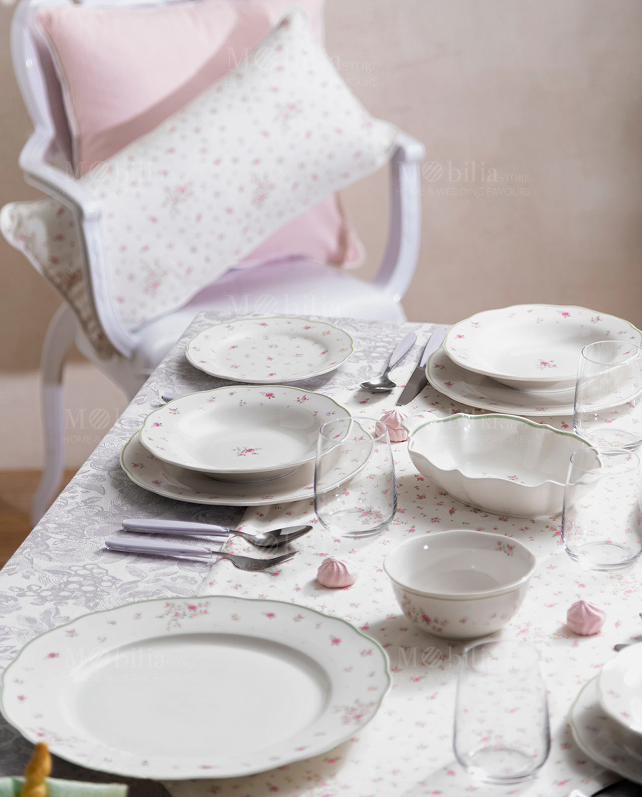 18-ti dílná sada talířů z porcelánu s květinovém stylu. Vašemu stolu dodá něžnost a eleganci.