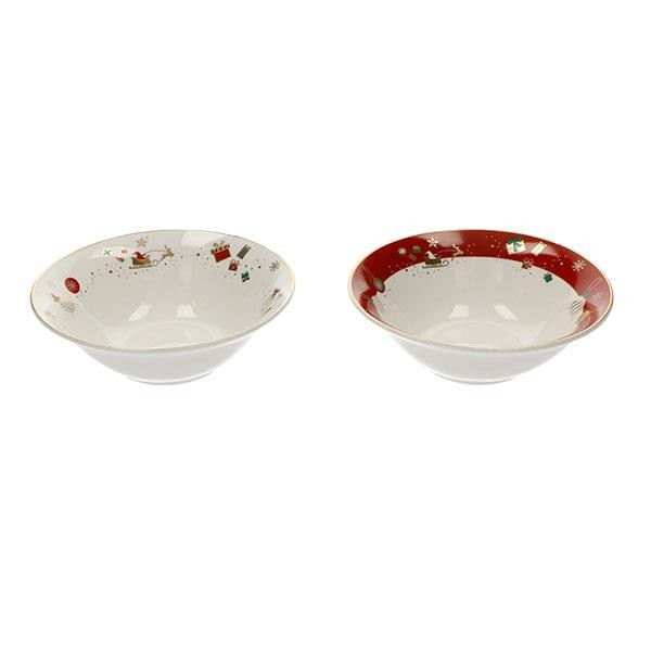 Sada 2 misek z porcelánu v bílé/červené/zlaté barvě s vánočním vzorem. Ozdobí váš slavnostní stůl nejen na Vánoce.