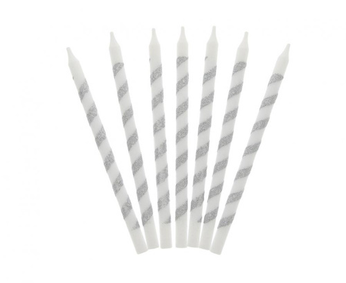 Tieto osemnásťcentimetrové sviečky v balení po šestnástich kusoch skvele poslúžia aj pri väčších oslavách a potešia tak nielen deti, ale aj dospelých oslávencov. Ich elegantný strieborný dizajn sa hodí ku každému typu dekorácie a štýlu party.