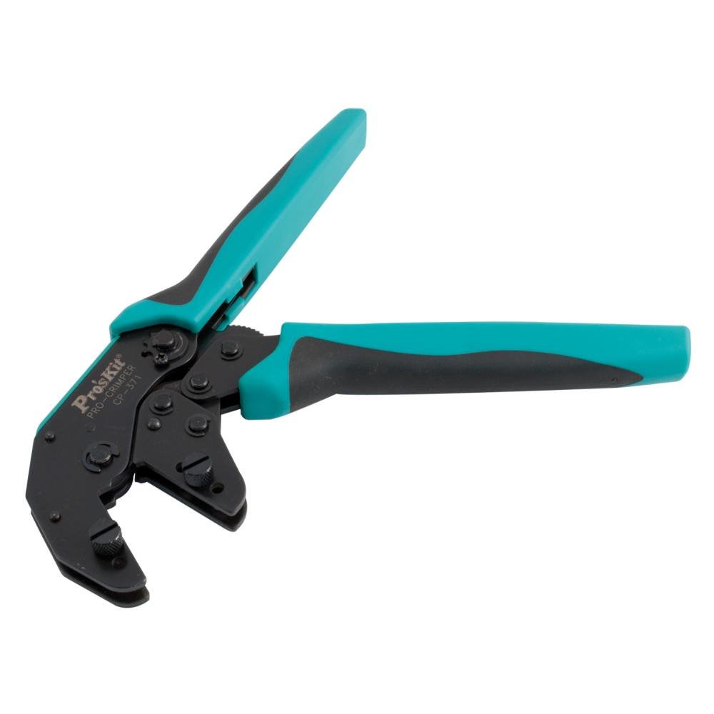Univerzální krimpovací kleště Pro'sKit s výměnnými čelistmi, špičková série PRO-Crimpers. Celoocelová konstrukce, Ráčnový princip pro snadné krimpování s nastavitelnou maximální silou stisku. Pouze kleště bez čelistí.