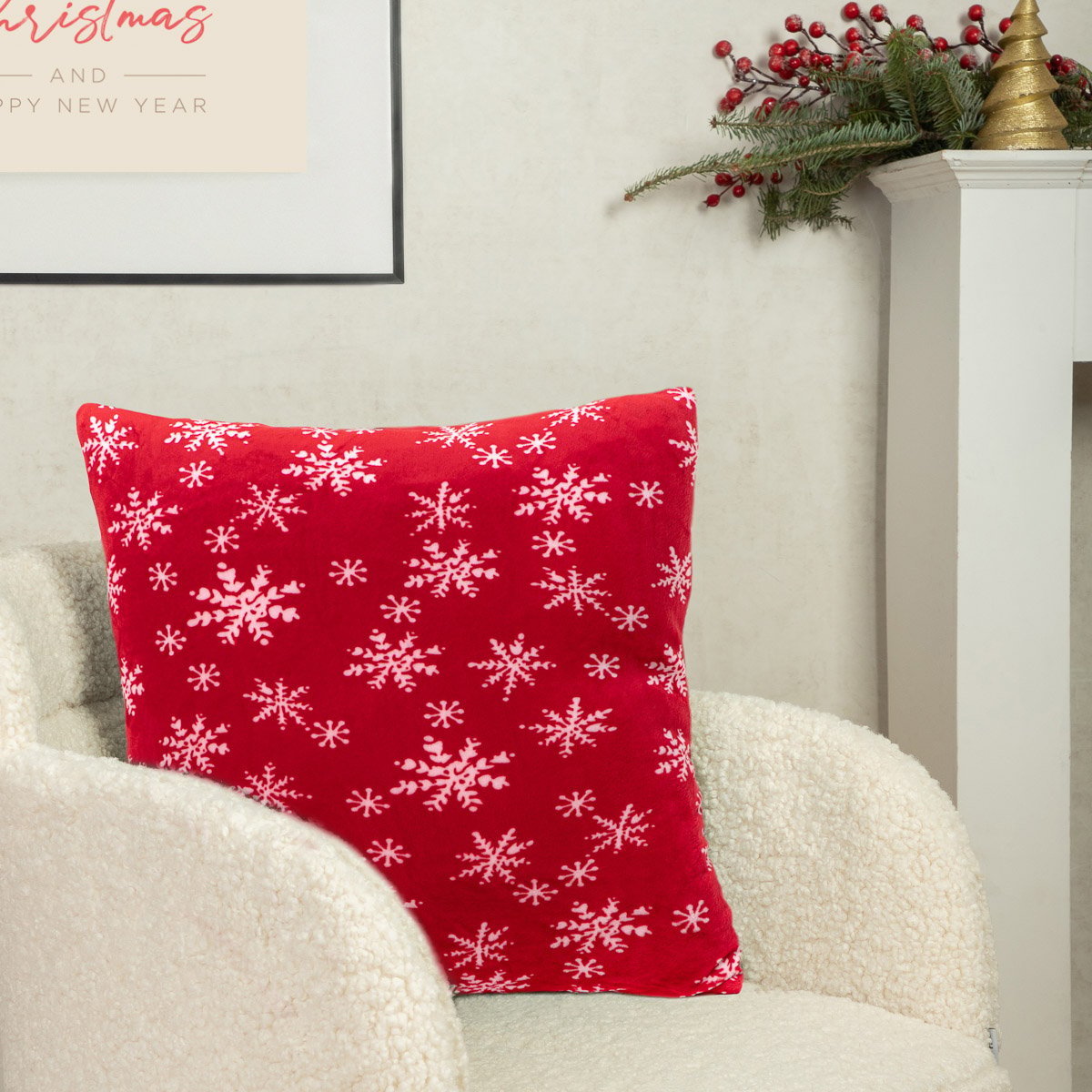 Vánoční polštář s výplní | SNOFLOCK | sněhové vločky červená | 45x45 cm | XM22 827810 Homla