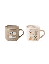 Sada 2 porcelánových šálků s víkem/podšálkem s motivem psů 350ml BRANDANI