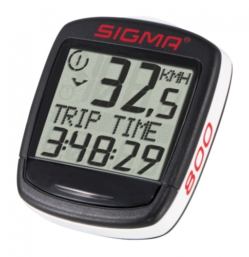 Nový model drátového cyklopočítače Sigma, v atraktivním barevném provedení. 8 funkcí.		- aktuální rychlost	- maximální rychlost	- denní kilometry	- celkové kilometry	- doba jízdy	- celková doba jízdy	- čas	- 7 jazyků.		Baterie lithiová typ 2032 1ks.	originál SIGMA kód 01940