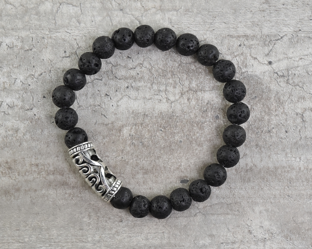 Lávový kámen - je kamenem se silnou pozitivní energií. Dodává sebejistotu, vitalitu a životní vyrovnanost. Nese v sobě sílu sopky. Zmírňuje záněty, otoky a bolesti. Posiluje imunitu a detoxikuje tělo. Harmonizuje své okolí a chrání nás před špatnou náladou.Velikost: univerzální Průměr jedné kuličky: 8 mm Materiál: lávový kámen, plast, kov