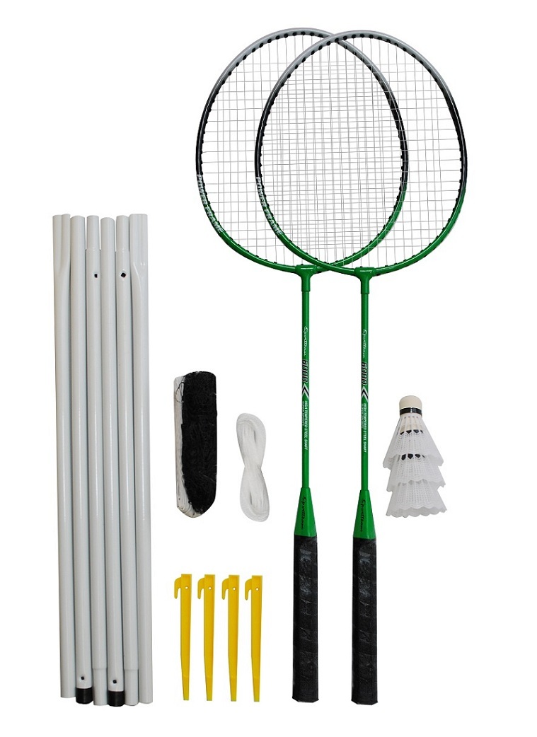 Badmintonový set 2x raketa, 3x míček, síť, vak