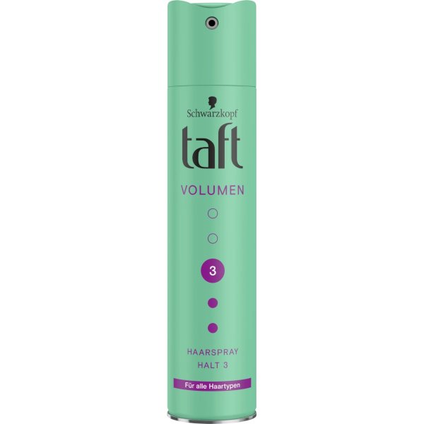 Taft lak na vlasy - Volumen - síla 3 - 250mlTaft Volume Hairspray s fixací 3 pro všechny typy vlasů dodává objem a zároveň zlepšuje přirozené natočení vlasů. Drží až 24 hodin bez přilepení nebo zanechání zbytků. Zároveň se snadno vyčesává. Tento lak na vlasy pomáhá chránit vlasy před vysoušením,...