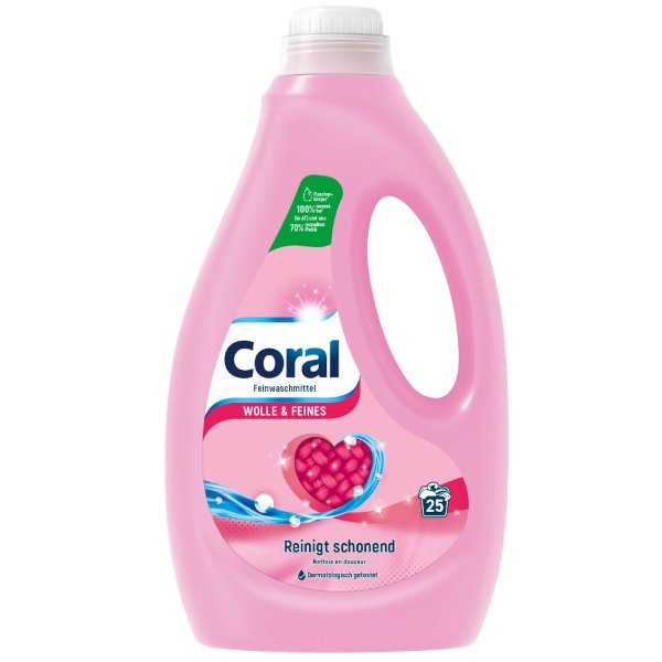 Coral prací gel na vlnu a hedvábí - 25PD - 1,25lTekutý prací gel Coral na vlnu, hedvábí, jemné prádlo a také na prádlo obsahující peří. Obsahuje jemnou pečující formuly, která se postará o čistotu a zachování vlákna. Vaše prádlo zůstane krásně nadýchané a měkké na dotek. Společnost Coral byla...