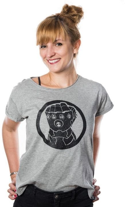 Thanosova Infinity Glove (rukavice), kolem které se točí děj posledních Avengers s podtitulem Infinity War, na krásném dámském tričku.Velikost: SMateriál: 100% bavlna prečítať celé