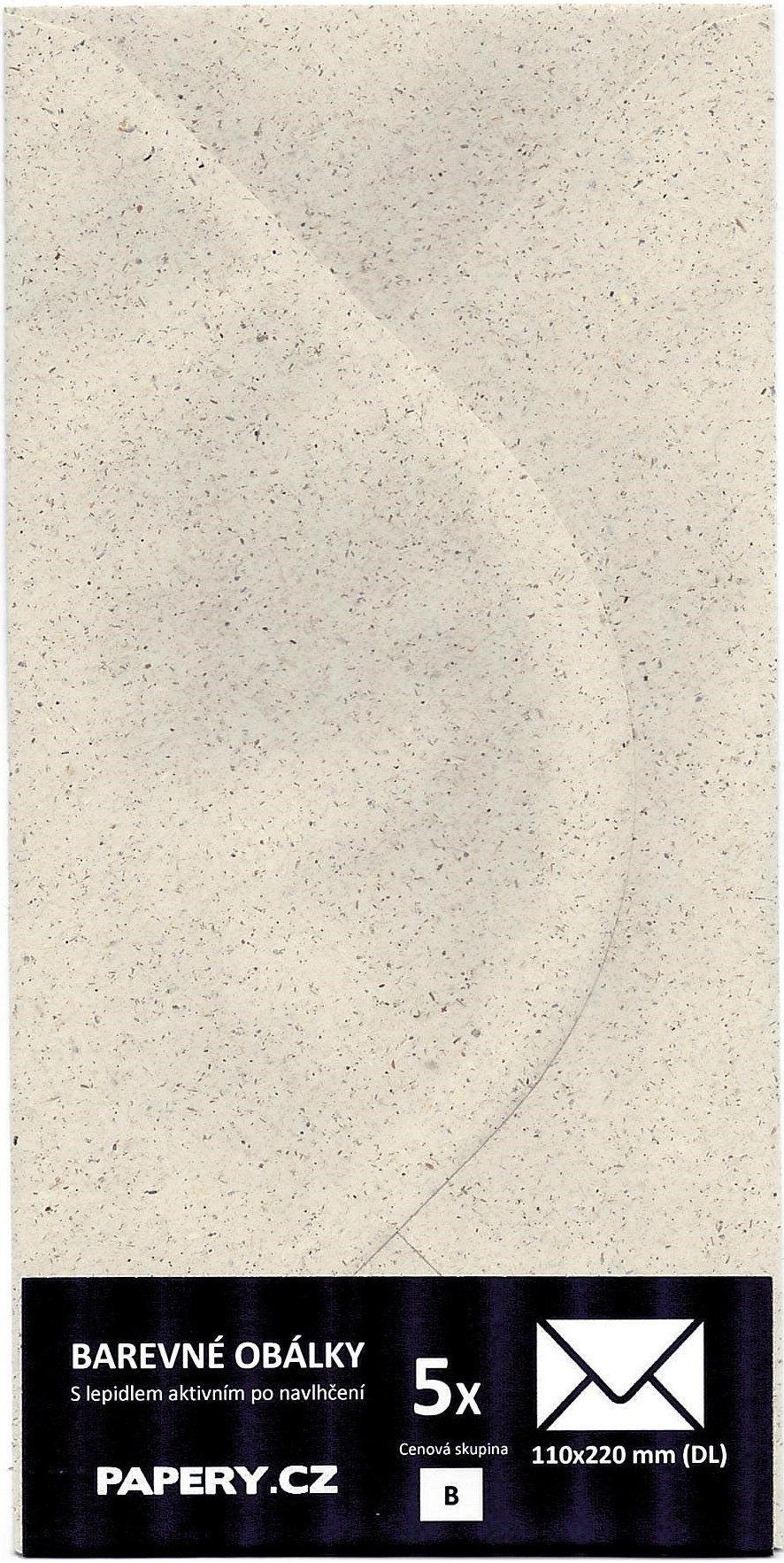 HYBLER S.R.O. barevná obálka 110x220 mm RECYKLOVANÁ TRÁVA, 5 kusů, 90 gm2, olizová