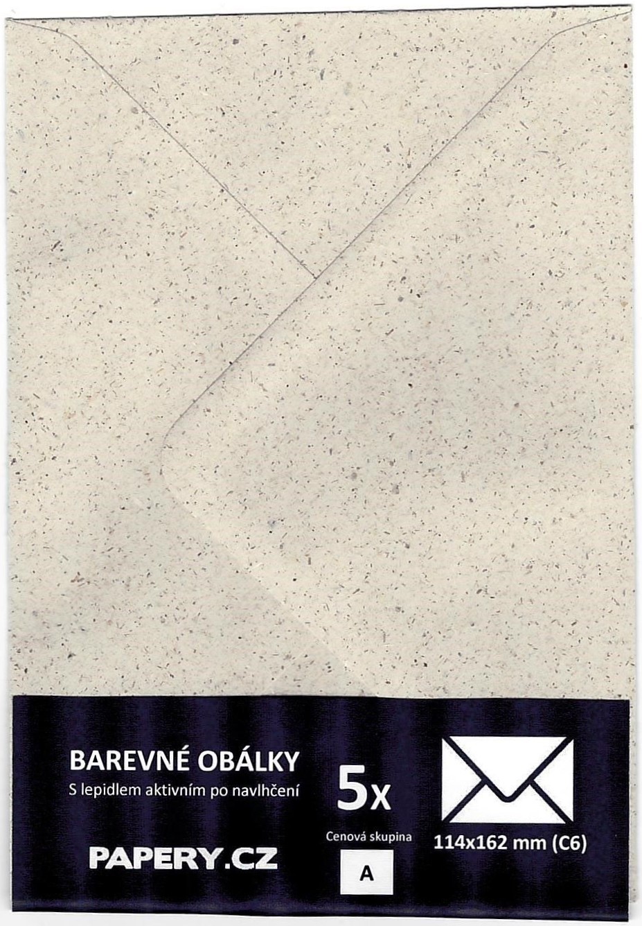 HYBLER S.R.O. barevná obálka 114X162 mm RECYKLOVANÁ TRÁVA, 5 kusů, 90 gm2, olizová