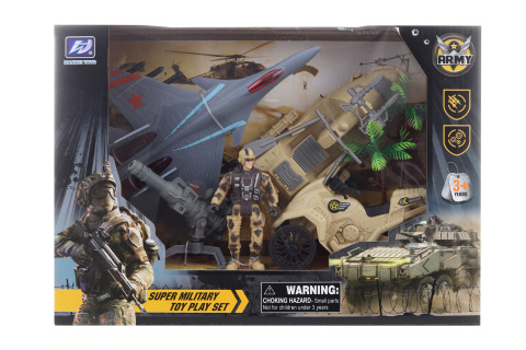 Vojenská sada obsahuje vojáka, stíhačku, motorku, vodní skútr a menší doplňky. Materiál plast. Baleno v krabičce. Rozměry balení cca 34x24x8 cm. Věk 3+ prečítať celé