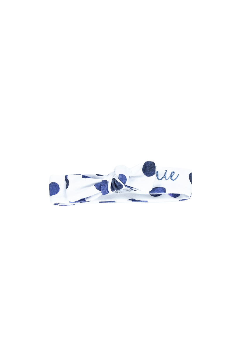 Dětská čelenka s uzlem ve velikosti pro miminka od 6-9 měsíců.
