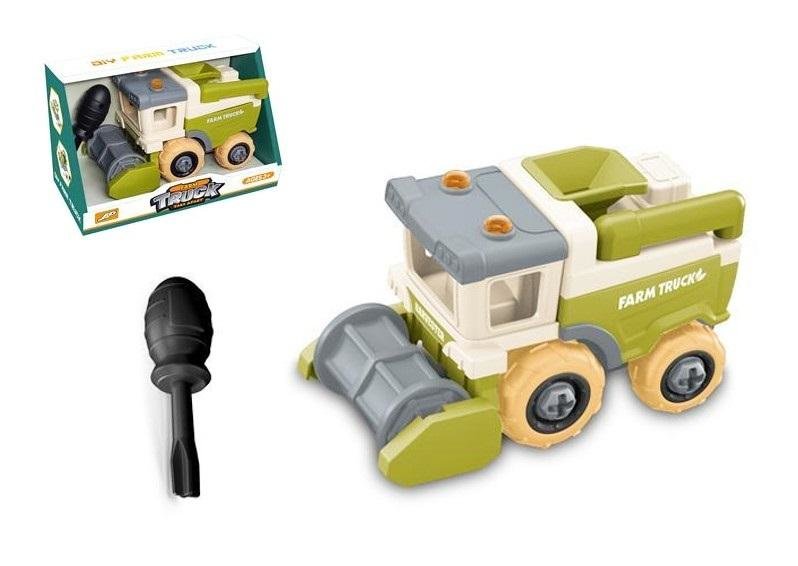 Kombajn do skręcania wraz z śrubokrętem pomagającym dziecku w odkręceniu śrubek w pojeździe. Posiada ruchome elementy. Dziecko poprzez zabawę nauczy się obsługiwać narzędzia przydatne w dorosłym życiu. Produkt dla dzieci od 3 roku życia. Produkt zapakowany w kartonowe opakowanie. Podane wymiary są wymiarami opakowania