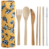 Sada 6 jídelních potřeb z bambusu v plátěném obalu Květy Botanical Pivoňka