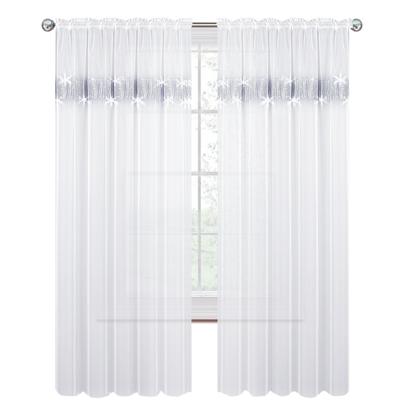 Nie lenže dodá vašim oknám príjemnú ľahkosť, ale tiež ich ozvláštni nádychom luxusu vďaka 12 cm širokému ozdobnému pásu z imitácie zirkónov, ktorý záclonu opticky zvýrazní a dodá jej šmrnc. Užívajte si krásu a funkčnosť v jednom s produktom, ktorý sa ľahko začlení do akéhokoľvek štýlu interiéru.