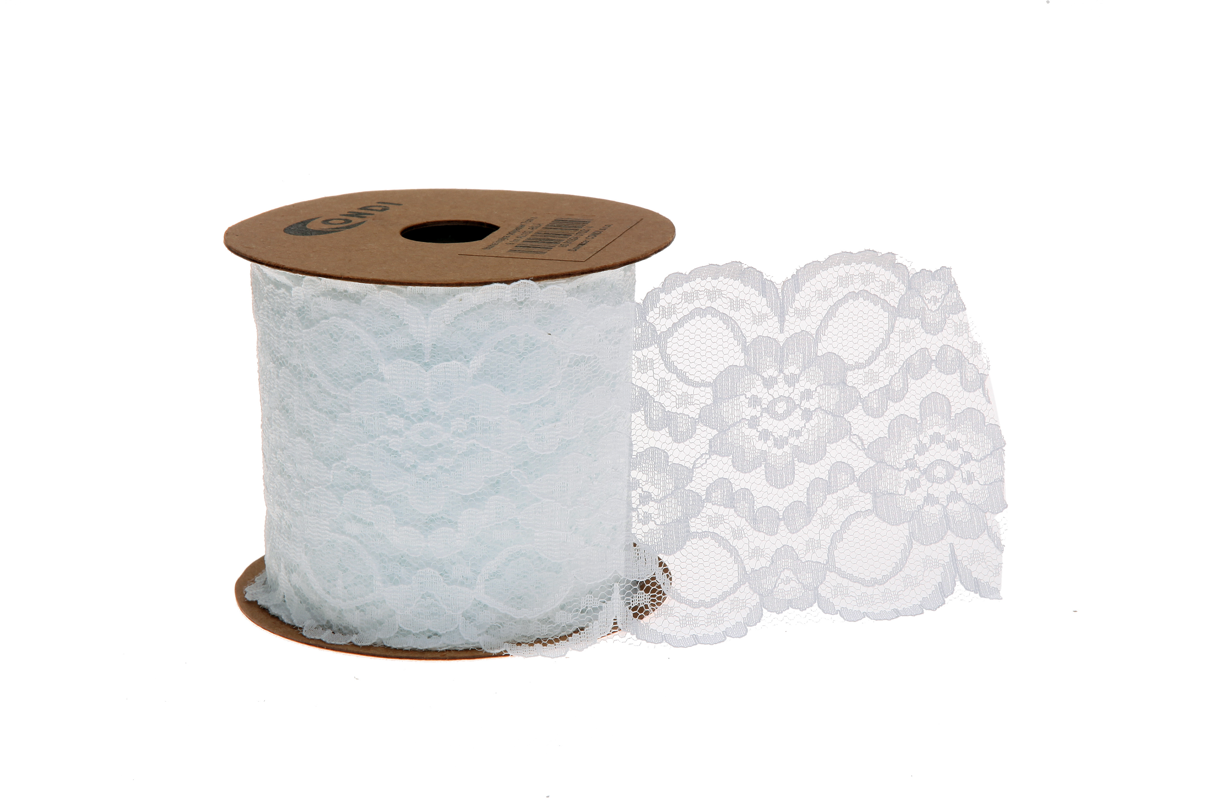 Krajková stuha syntetická 7cm x 9,1m AL102 - BÍLÁ