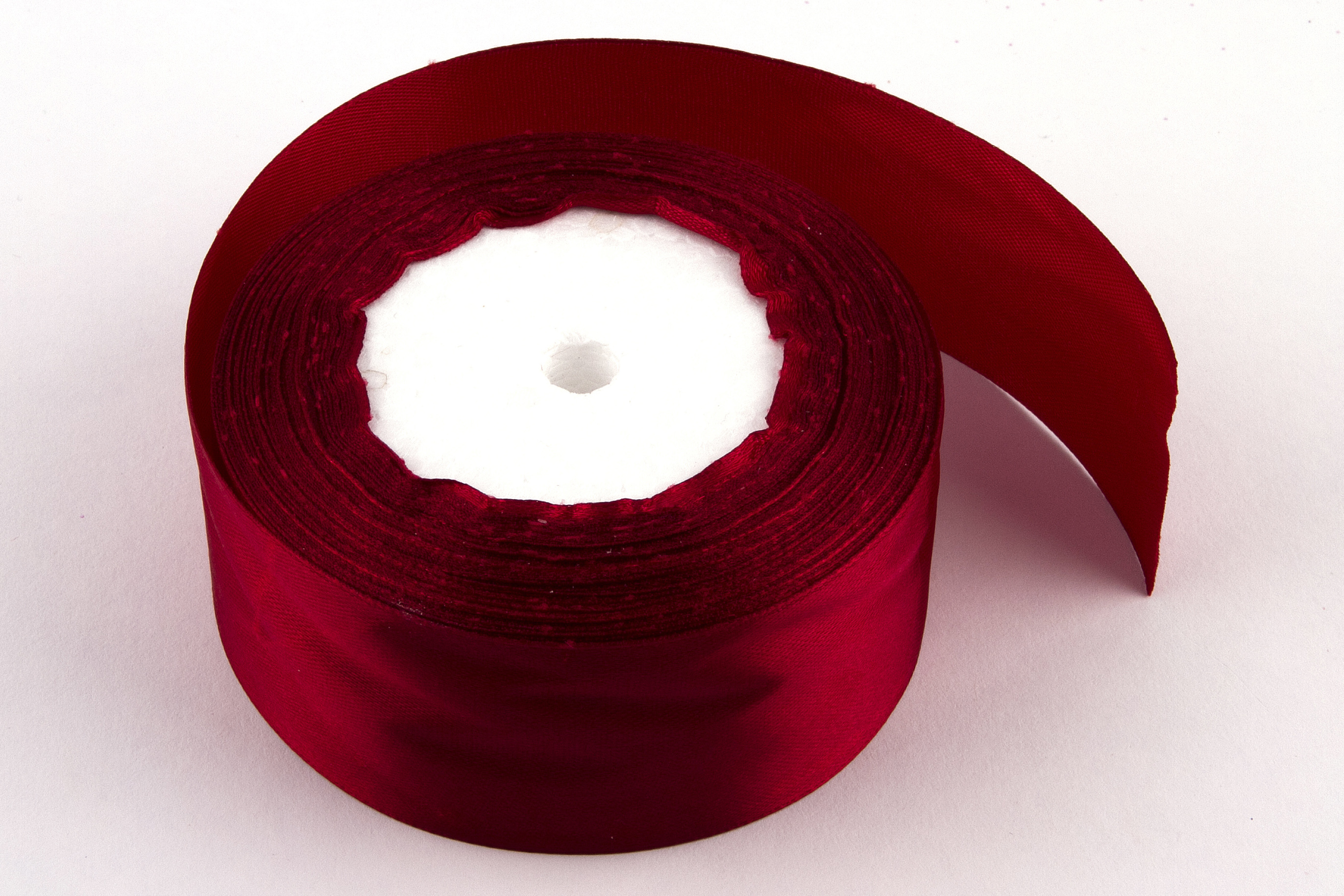 Vínová 4 cm široká saténová stuha velkého návinu, někdy nazývaná atlasová je charakteristická svým vysokým leskem. Použitá saténová stuha vytváří dojem elegantnější vazby. Saténová stuha ze 100% polyesteru. Vhodná k použití balení dárků, kreativní tvoření a do květinových vazeb.
