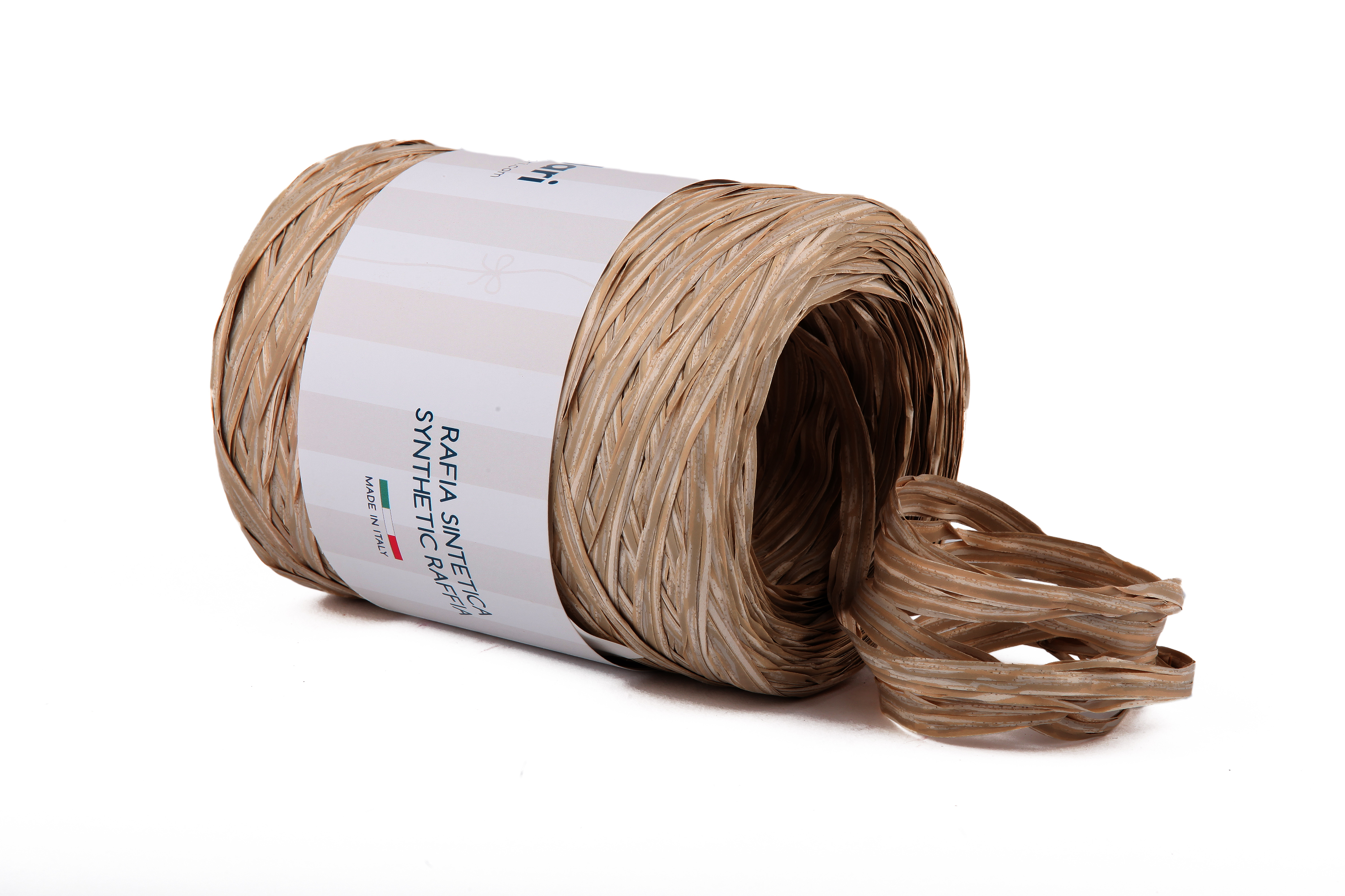Klubo žebrované syntetické rafie vintage krémové barvy. (příjemné přírodní tóny) Djednoduchým způsobem a přirozeným účinkem. Páska syntetické rafie je nová klasika ve výzdobě, dává obalu přirozený vzhled, přičemž je odolná vůči vodě, velmi praktická funkce typická pro polypropylenové pásky. Vyrobno v Itálii.