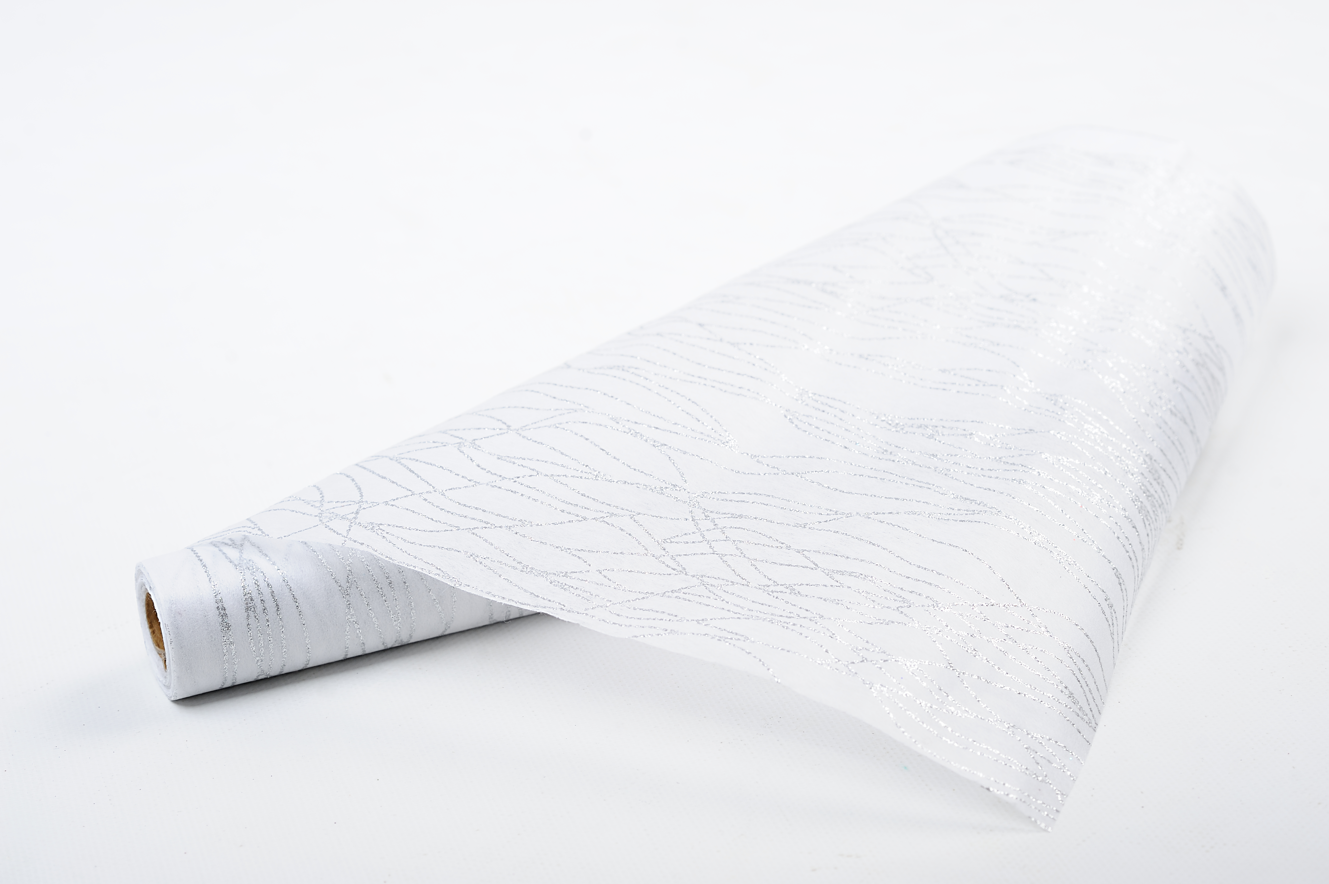 Bílý 37,5 cm široký vlizelín s krásnou glitrovanou vlnkou na roli. Nejen k vánoční dekoraci a aranžmá. prečítať celé