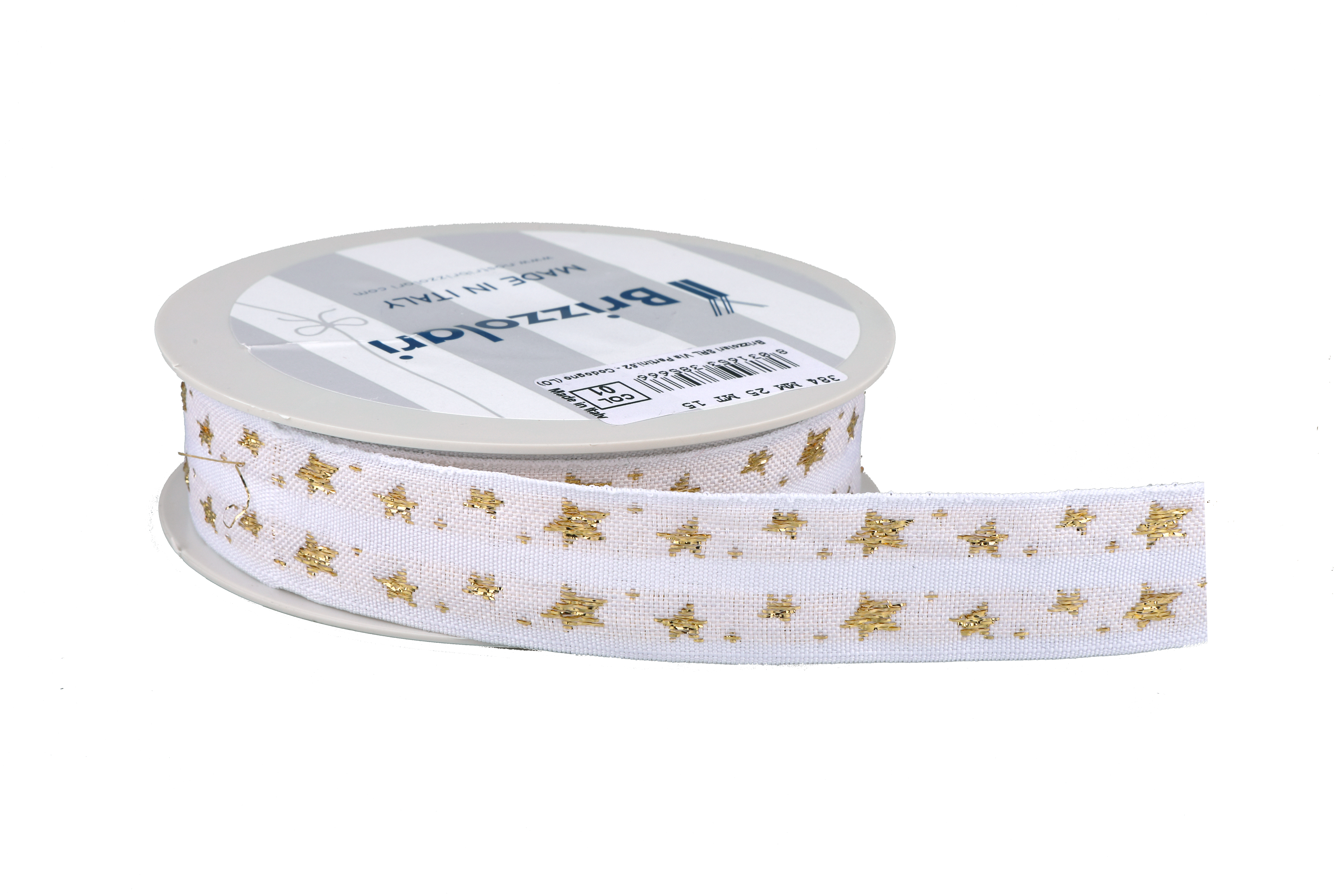 Stuha textilní tkaná hvězdy 384 2,5cm x 15m - 01 BÍLÁ/ZLATÁ
