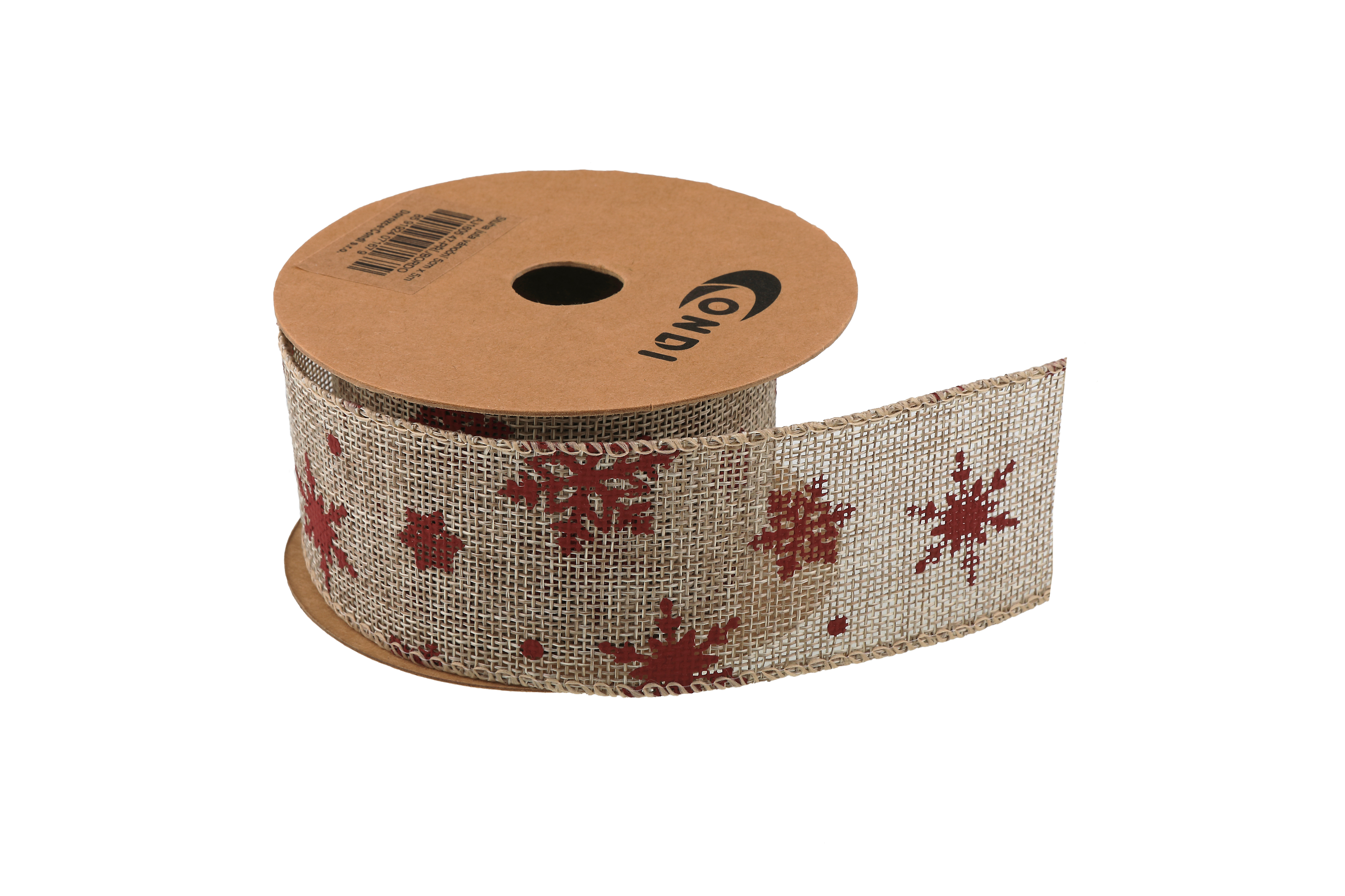 Vánoční jutová stuha vzor vločka 5cm x 5m AJ1605 47 - přírodní/bordeaux