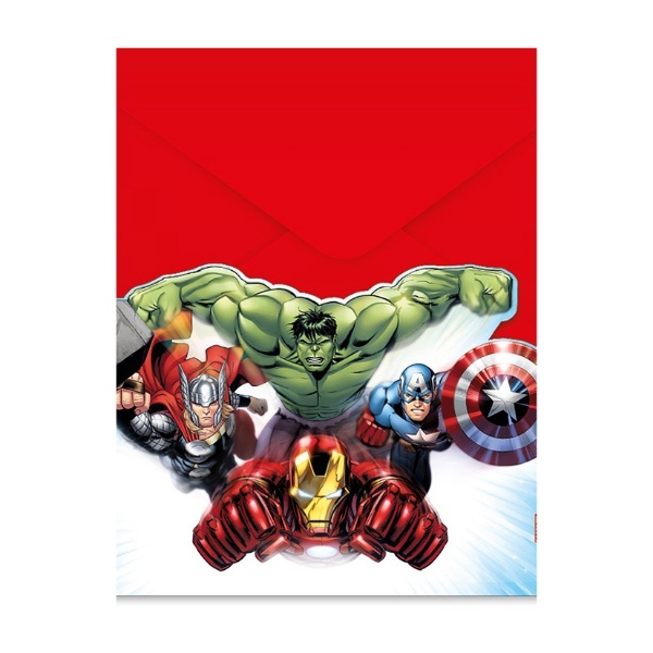 Papírové pozvánky s motivem superhrdinů Marvel Avengers. Pozvěte své kamarády stylově na vaší oslavu narozenin nebo tematickou party. Dají se použít i jako děkovné kartičky