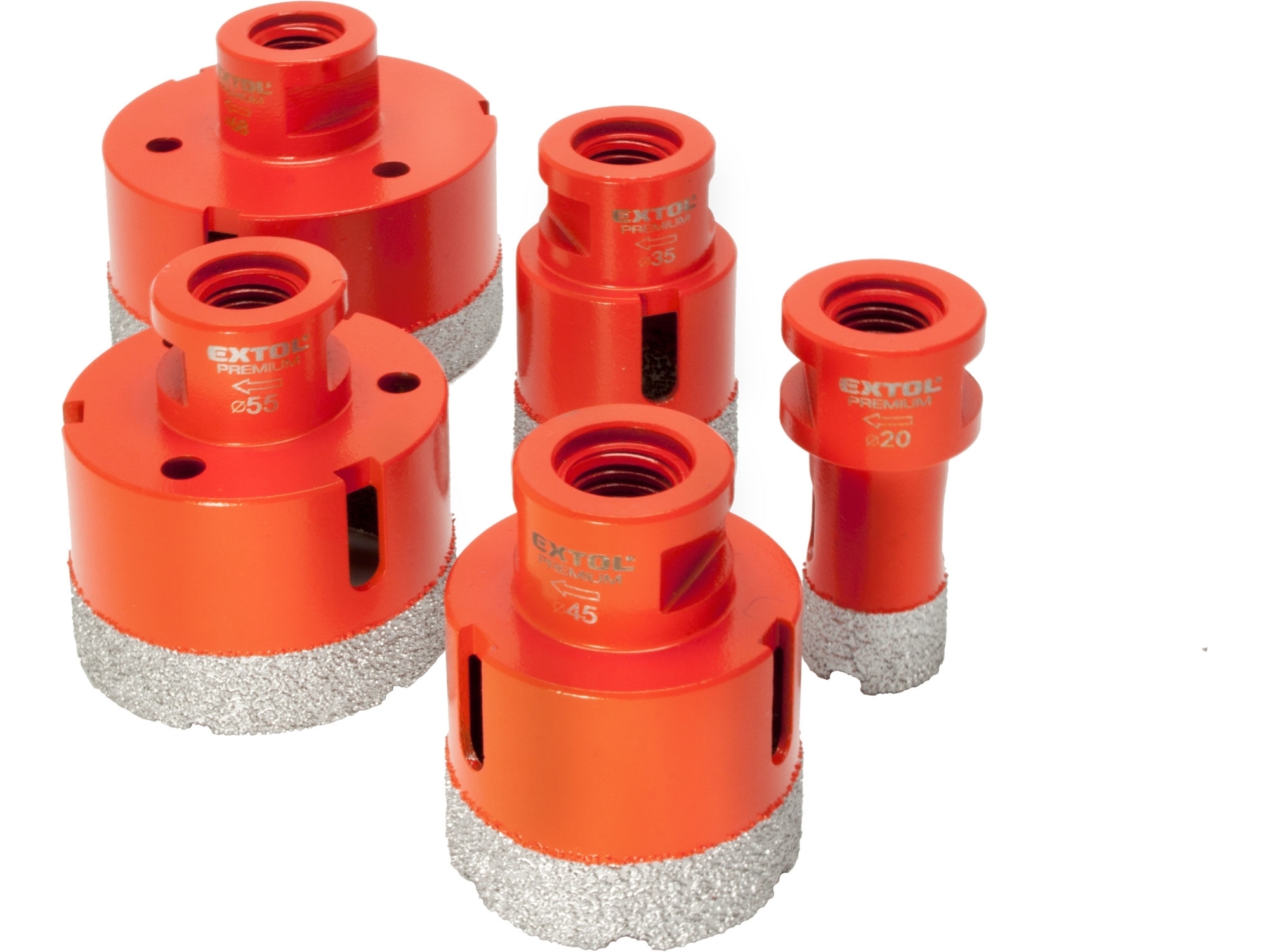 EXTOL PREMIUM sada 5ks vykružovacích diamantových korunek, O 20-35-45-55-68mm, závit M14