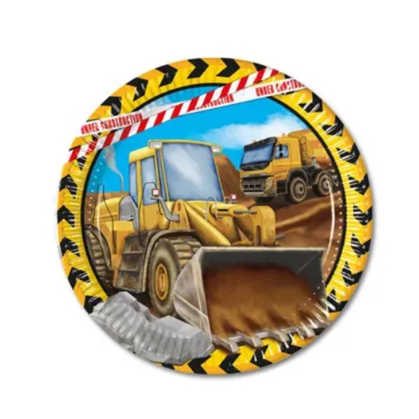 Papírové talíře s motivem dopravních prostředků Staveniště - bagr, budou nepostradatelným doplňkem každé oslavy narozenin, tématické party nebo zahradní oslavy s grilováním. Jsou také velmi praktické, talíře po použití jednoduše ekologicky zlikvidujete, bez nutnosti mytí.