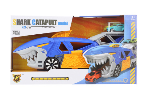 Sada velkého auta v motivu žraloka s vystřelovacími autíčky. Balení obsahuje velké auto a 2 malá autíčka. Žralok funguje jako vystřelovací dráha. K vystřelení dojde pomocí gumiček umístěných v zadní části. Materiál plast. Baleno v krabici. Rozměry balení cca 35,5x19,5x9 cm. Věk 3+