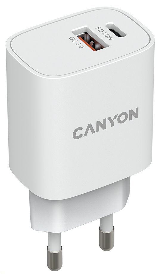 CANYON nabíječka do sítě H-20-04, 1x USB-C PD 20W, 1x USB-A QC 3.0 18W, bílá