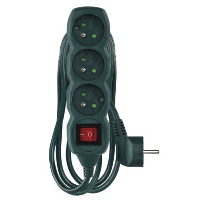Prodlužovací kabel EMOS P1312Z s vypínačem 2 m, 3 zásuvky, zelený, 1 mm2