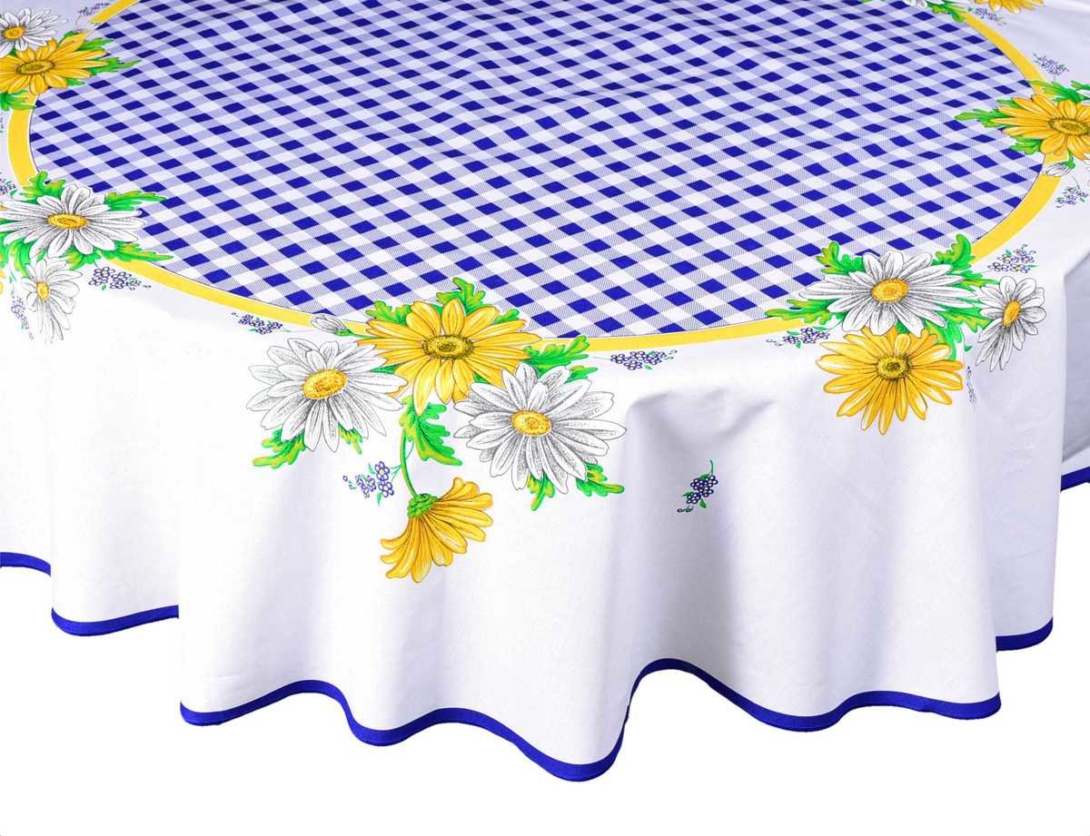 Forbyt, Ubrus celoroční, Gerbera, modrý, průměr 140 cm.