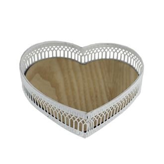 Dekorační podnos ve tvaru srdce.Podnos je vhodný na dekorování.Rozměry : 15 x 15,5 cm, výška 3,5 cm.Barva : kombinace přírodní, bílá.Materiál na bázi dřeva, kov. prečítať celé