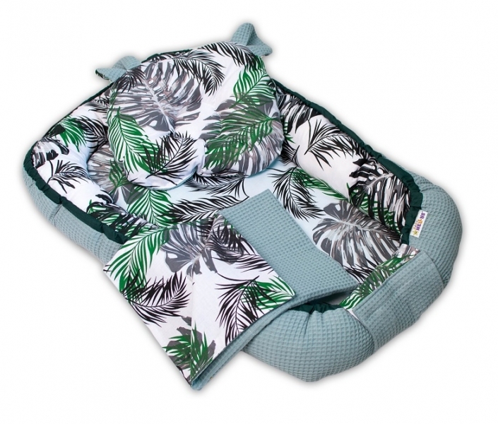 Sada komplet oboustr. hnízdečko Vafel, 60 x 90 cm - Listy, zelený