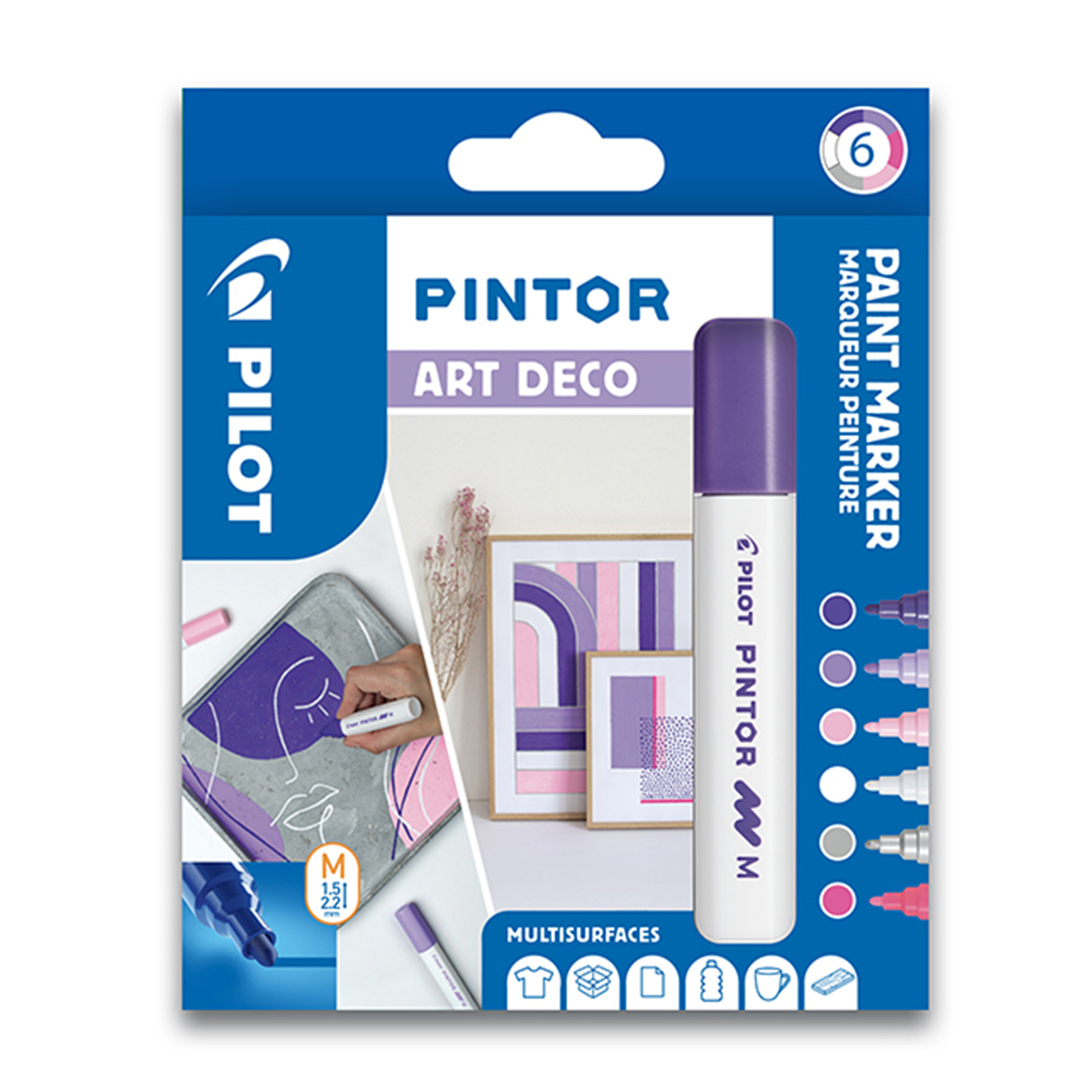 Pilot, Sada 6 ks Akrylový Akrylový Popisovač Pintor, (M) střední, Art Deco