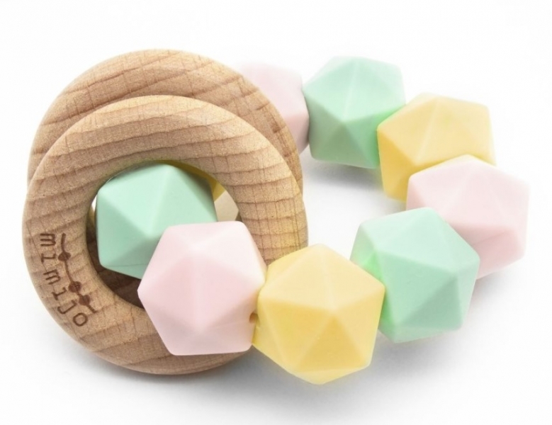 Mimijo Silikonové kousátko a chrastítko 2v1 Linda - pastelové