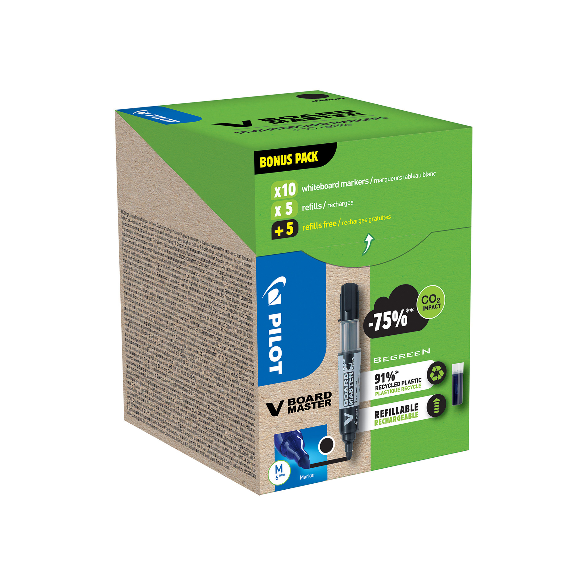 Pilot, Sada 10 ks Popisovač na bílé tabule VBoardMaster a náplň, Greenpack, černá